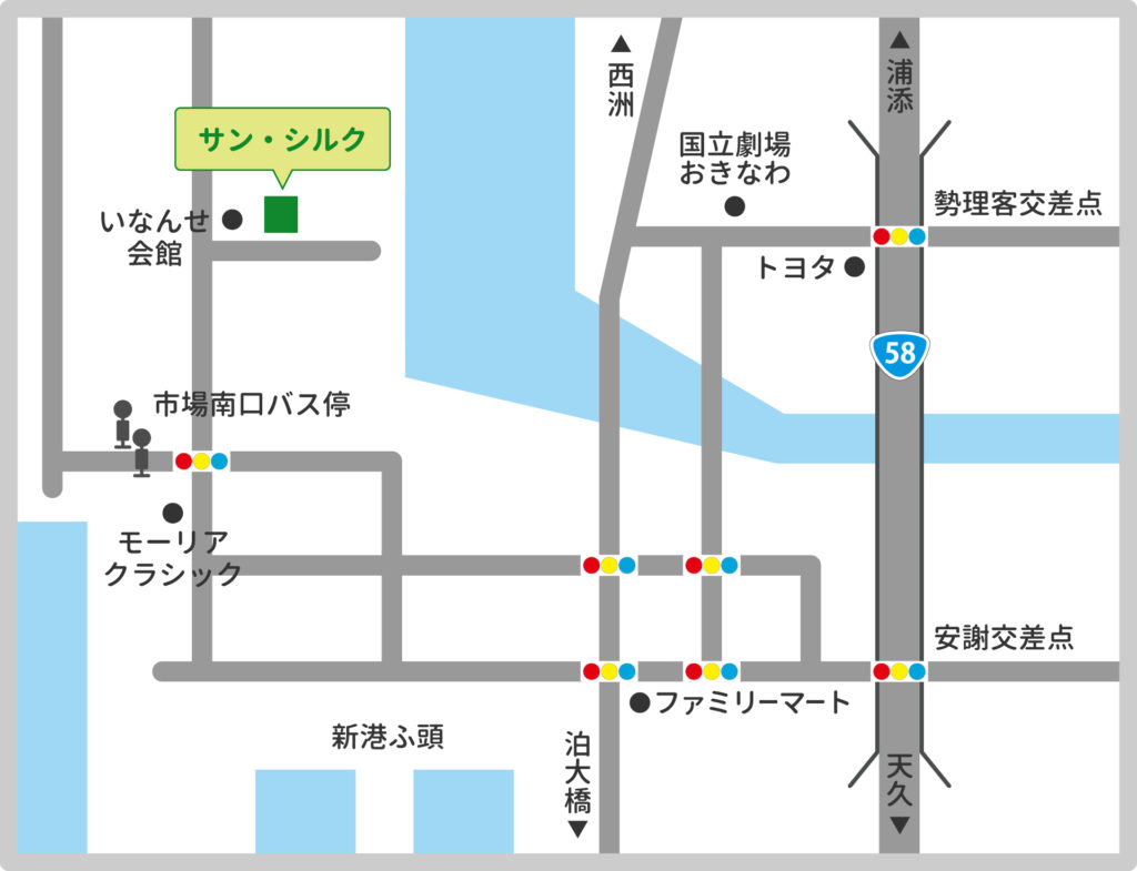 アクセス 2023.07.232023.10.26 交通のご案内 バスをご利用の場合 バスターミナル前(那覇市)より・那覇バス(株) 101 平和台安謝線「市場南口」下車 徒歩5分 ※バスは本数が少ないためご利用の際は時間をご確認ください お車をご利用の場合 ・駐車場 20台あり ・大型バス等でお越しの際には、事前にご連絡が必要となります Google mapで見る →